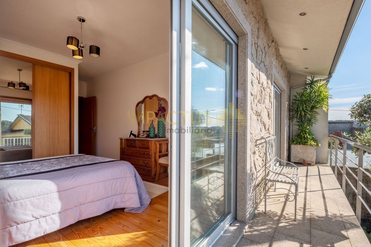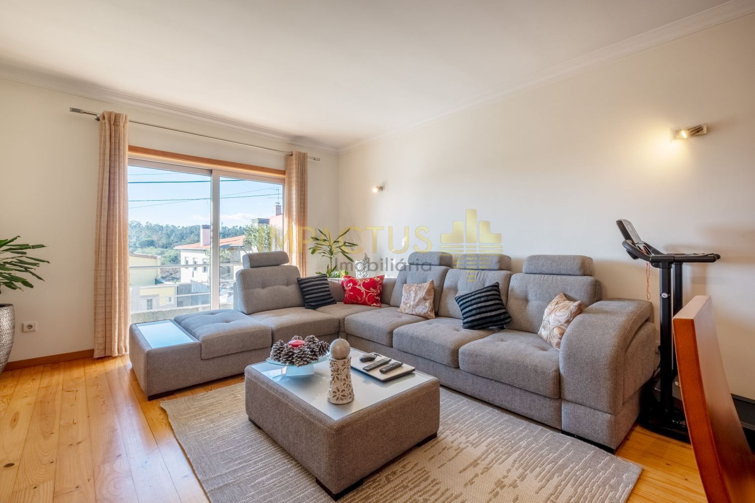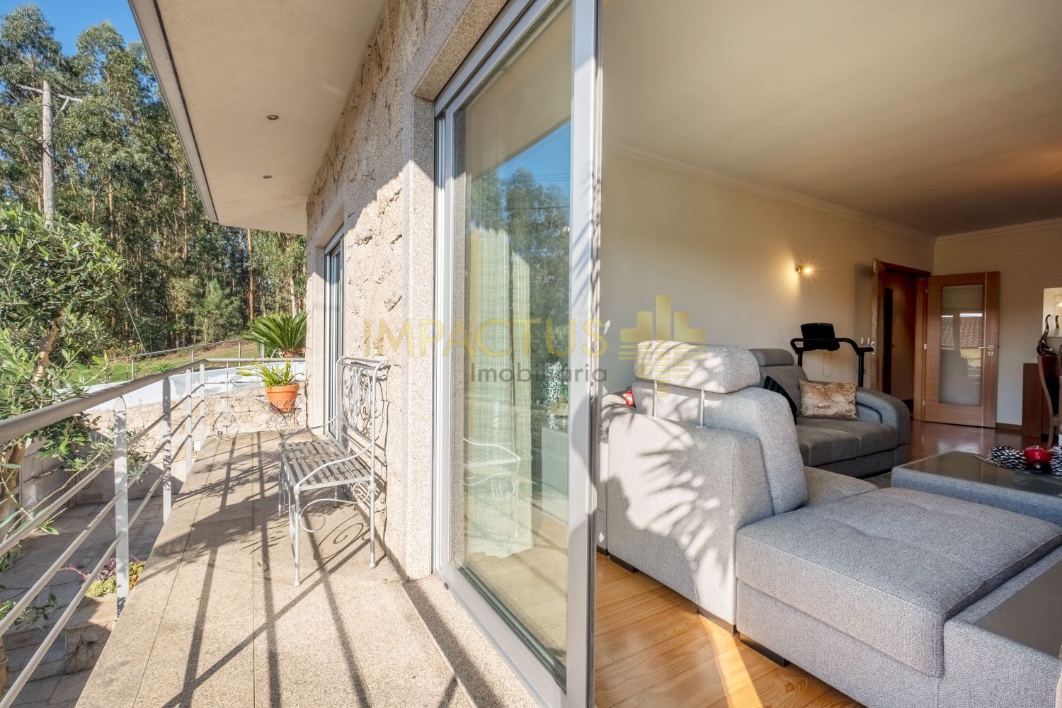 Ref. Interna: TC1670 Moradia semi-térrea de arquitetura moderna, situada numa tranquila urbanização de moradias unifamiliares, que combina conforto e funcionalidade. Com 193 m² de área bruta de construção, 131 m² de área útil e implantada num terreno de 375 m², esta propriedade destaca-se pelas suas três frentes, que garantem ótima exposição solar e luminosidade natural. Ao entrar, encontra um acolhedor hall que distribui harmoniosamente as várias divisões da casa. A sala, ampla e convidativa, oferece um ambiente ideal para momentos de convívio e descanso. A zona privativa é composta por uma suíte confortável e dois quartos adicionais, ambos com áreas generosas e excelente luminosidade. A cozinha, ampla e funcional dispõe de acesso direto a um terraço, ideal para refeições ao ar livre, lazer ou simplesmente para desfrutar de um final de tarde tranquilo. A propriedade conta ainda com um aproveitamento de sótão, oferecendo um espaço extra versátil, perfeito para arrumos, escritório, zona de hobbies ou sala adicional. No exterior, encontram-se anexos que acrescentam utilidade e organização, bem como uma garagem fechada com capacidade para uma viatura. Equipada com aquecimento central, painel solar e estores elétricos, esta moradia assegura eficiência energética, conforto térmico durante todo o ano. Localiza-se a cerca de 6 km do centro da Trofa, beneficiando de proximidade a comércio, serviços e transportes, e apenas a 4 km do acesso à nova variante N14, que assegura uma ligação rápida e eficaz às principais zonas do Porto. Não se preocupe com a burocracia ou com a extenuante tarefa de analisar as propostas de crédito; temos à sua disposição um departamento jurídico que assegura que tudo é tratado dentro dos trâmites legais e de forma a salvaguardar os seus interesses, e departamento de análise de crédito que o auxiliará na interpretação das melhores propostas conseguidas. Marque já a sua visita. IMPACTUS, a criar impacto desde o primeiro clique!