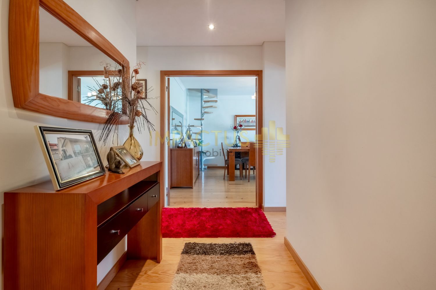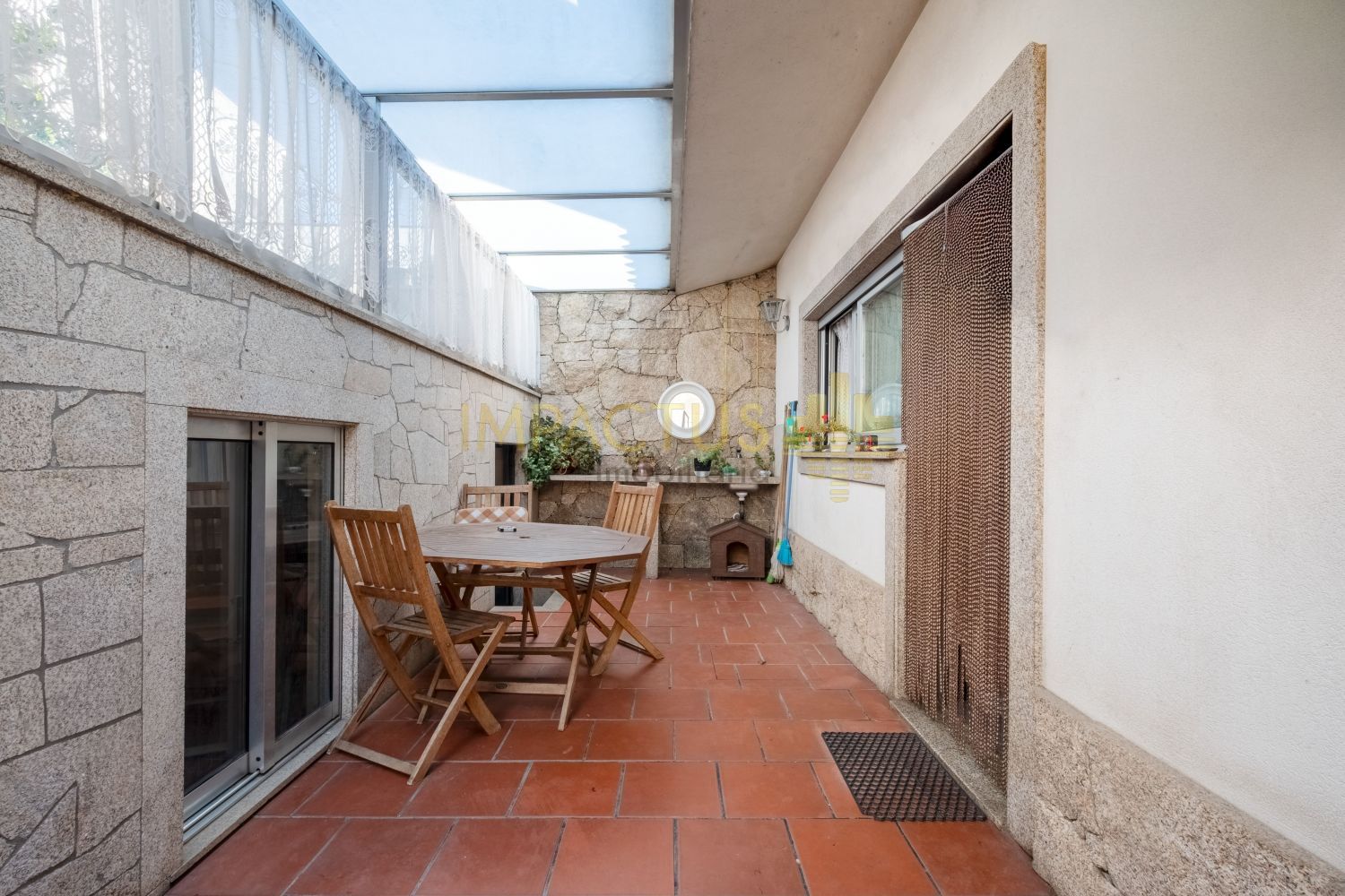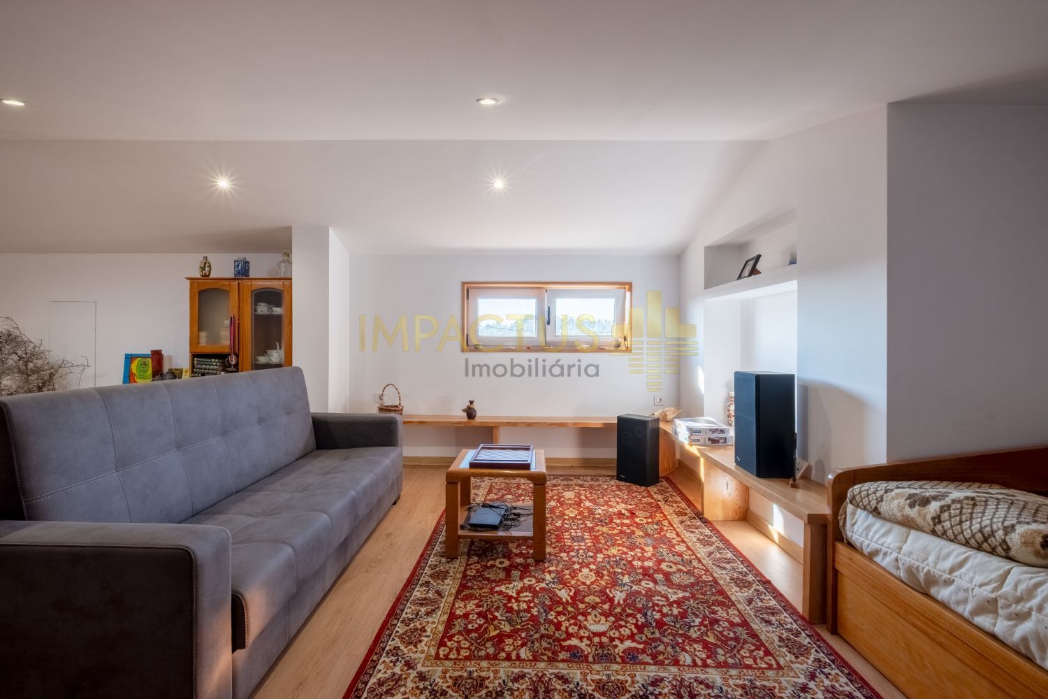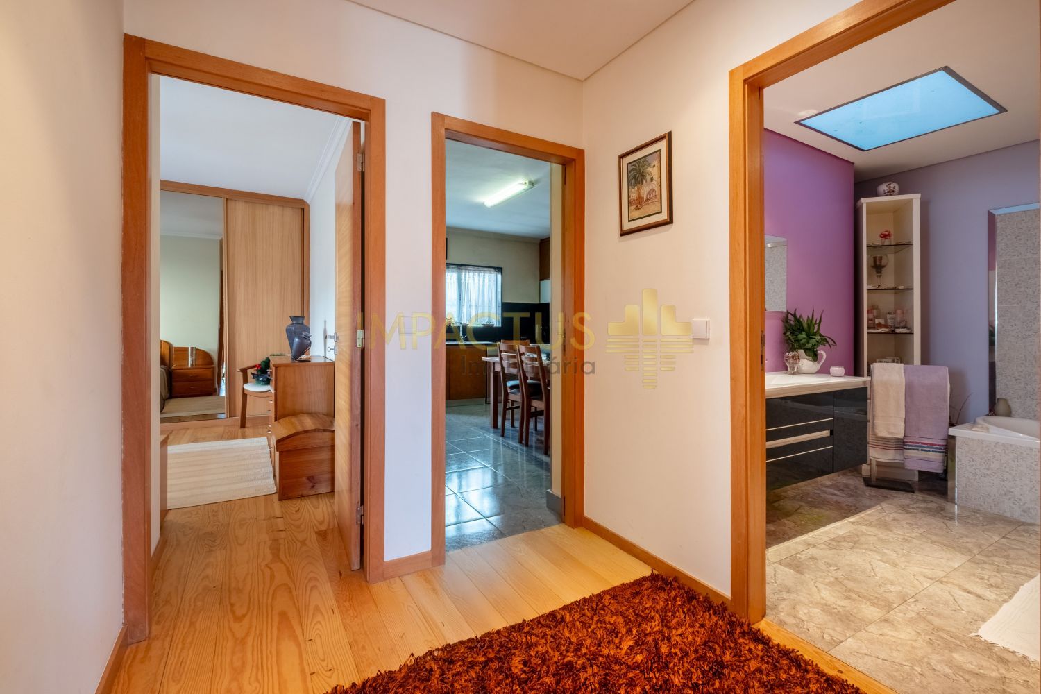 Ref. Interna: TC1670 Moradia semi-térrea de arquitetura moderna, situada numa tranquila urbanização de moradias unifamiliares, que combina conforto e funcionalidade. Com 193 m² de área bruta de construção, 131 m² de área útil e implantada num terreno de 375 m², esta propriedade destaca-se pelas suas três frentes, que garantem ótima exposição solar e luminosidade natural. Ao entrar, encontra um acolhedor hall que distribui harmoniosamente as várias divisões da casa. A sala, ampla e convidativa, oferece um ambiente ideal para momentos de convívio e descanso. A zona privativa é composta por uma suíte confortável e dois quartos adicionais, ambos com áreas generosas e excelente luminosidade. A cozinha, ampla e funcional dispõe de acesso direto a um terraço, ideal para refeições ao ar livre, lazer ou simplesmente para desfrutar de um final de tarde tranquilo. A propriedade conta ainda com um aproveitamento de sótão, oferecendo um espaço extra versátil, perfeito para arrumos, escritório, zona de hobbies ou sala adicional. No exterior, encontram-se anexos que acrescentam utilidade e organização, bem como uma garagem fechada com capacidade para uma viatura. Equipada com aquecimento central, painel solar e estores elétricos, esta moradia assegura eficiência energética, conforto térmico durante todo o ano. Localiza-se a cerca de 6 km do centro da Trofa, beneficiando de proximidade a comércio, serviços e transportes, e apenas a 4 km do acesso à nova variante N14, que assegura uma ligação rápida e eficaz às principais zonas do Porto. Não se preocupe com a burocracia ou com a extenuante tarefa de analisar as propostas de crédito; temos à sua disposição um departamento jurídico que assegura que tudo é tratado dentro dos trâmites legais e de forma a salvaguardar os seus interesses, e departamento de análise de crédito que o auxiliará na interpretação das melhores propostas conseguidas. Marque já a sua visita. IMPACTUS, a criar impacto desde o primeiro clique!